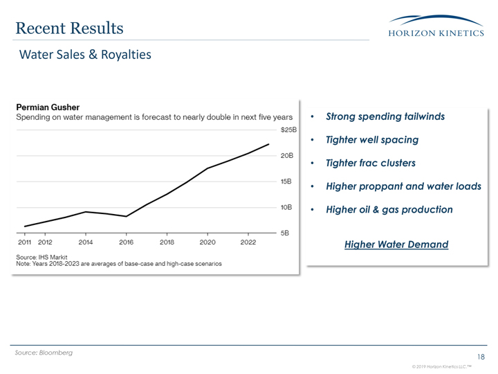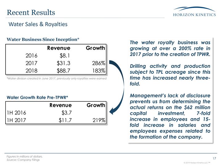 Inception* *Water division created in June 2017, previously only royalties were earned Water Growth Rate Pre-TPWR* Water Sales & Royalties The water royalty business was growing at over a 200% rate in 2017 prior to the creation