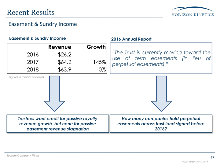 revenue growth, but none for passive easement revenue stagnation Easement & Sundry Income Figures in millions of dollars