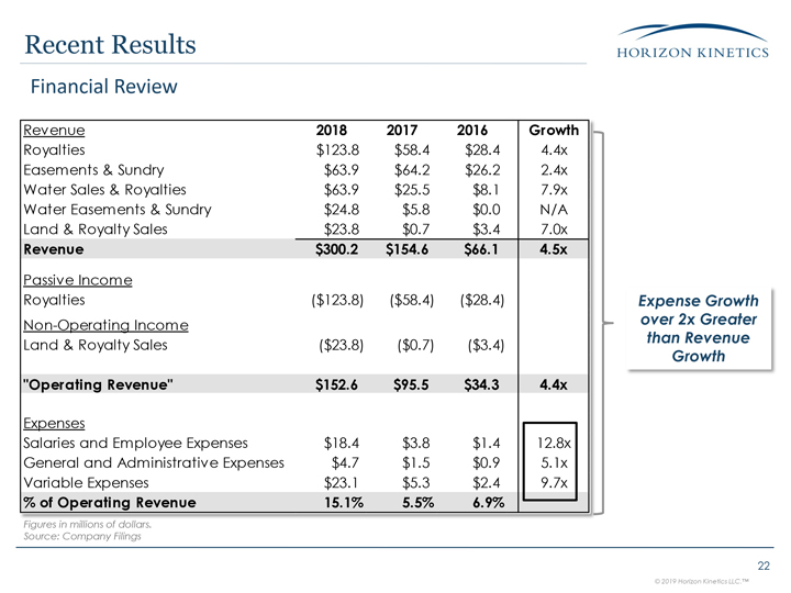 Judgment (Cont’d)Management has spent over $62 million on an active water business that requires large capital expenditures and employee management without shareholder approval and limited disclosure.2018 was the lowest percentage of