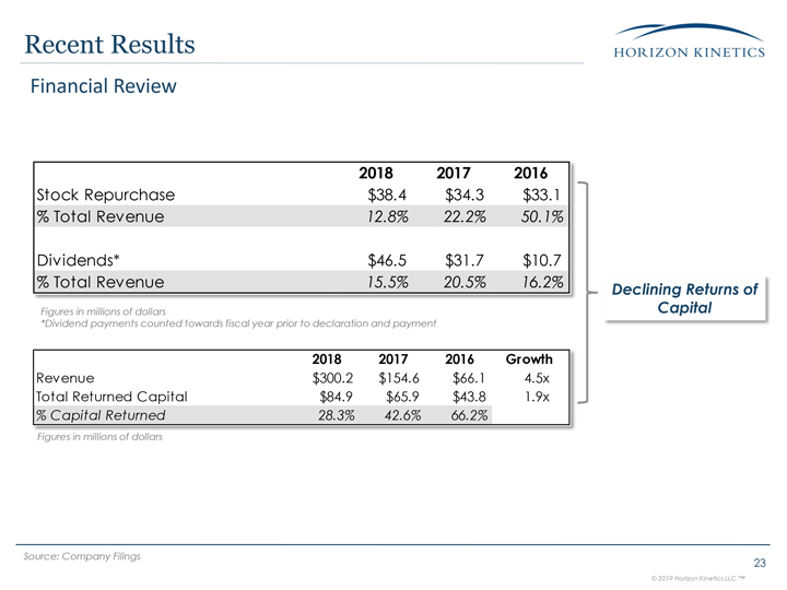 Recent Results 22 Financial Review Expense Growthover 2x Greater than Revenue