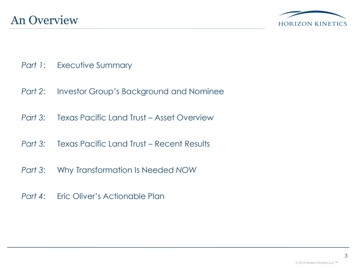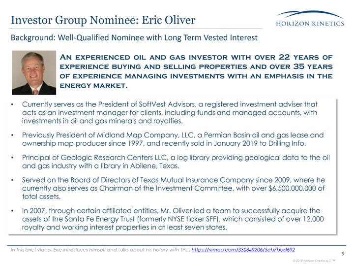 outstanding shares of Texas Pacific Land Trust (NYSE: TPL), released today a presentation highlighting the need for change at TPL, and Eric Oliver’s actionable plan to maximize value for TPL investors.
