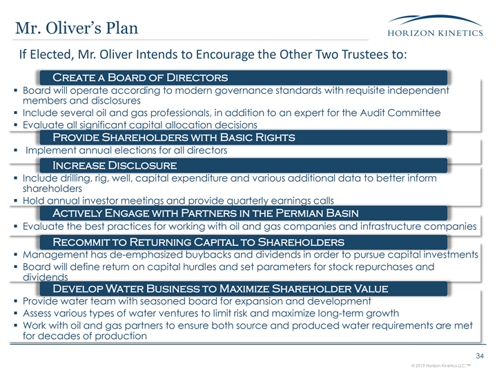 & Disclosure Board of Directors Vested Board/Management Experienced Board/Management Reemphasize buyback and return of capital to unitholders----------Work with State and operators to maximize assets to mutual best