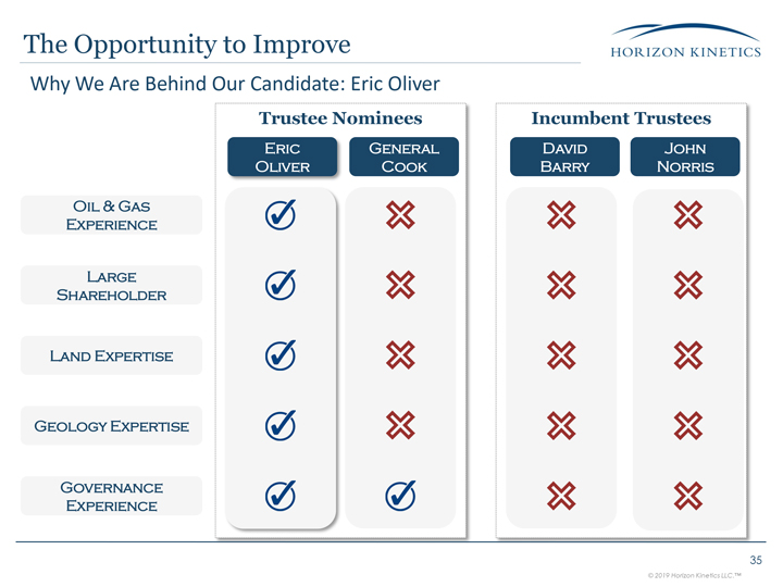 Trustee Nominees Incumbent Trustees The Opportunity to Improve 35 Oil & Gas